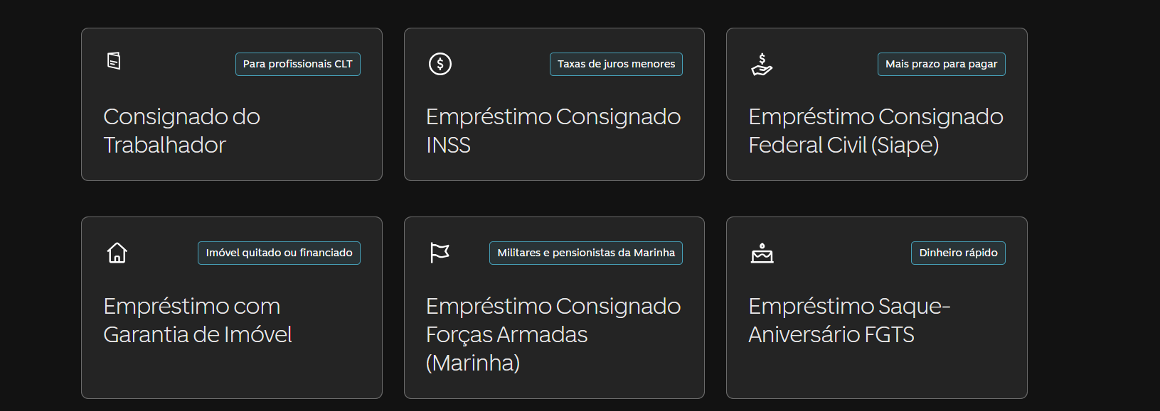 Eu recomendo também olhar o Banco Inter e o C6 Bank, que costumam liberar crédito para quem tá fora do mercado formal.