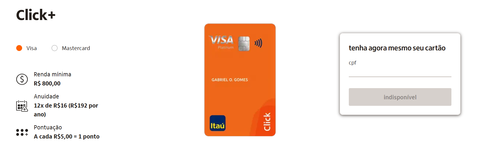 Se você está com score 500 e quer um cartão que te ajude a aumentar seu limite ao longo do tempo, o Itaucard Click pode ser a escolha certa.