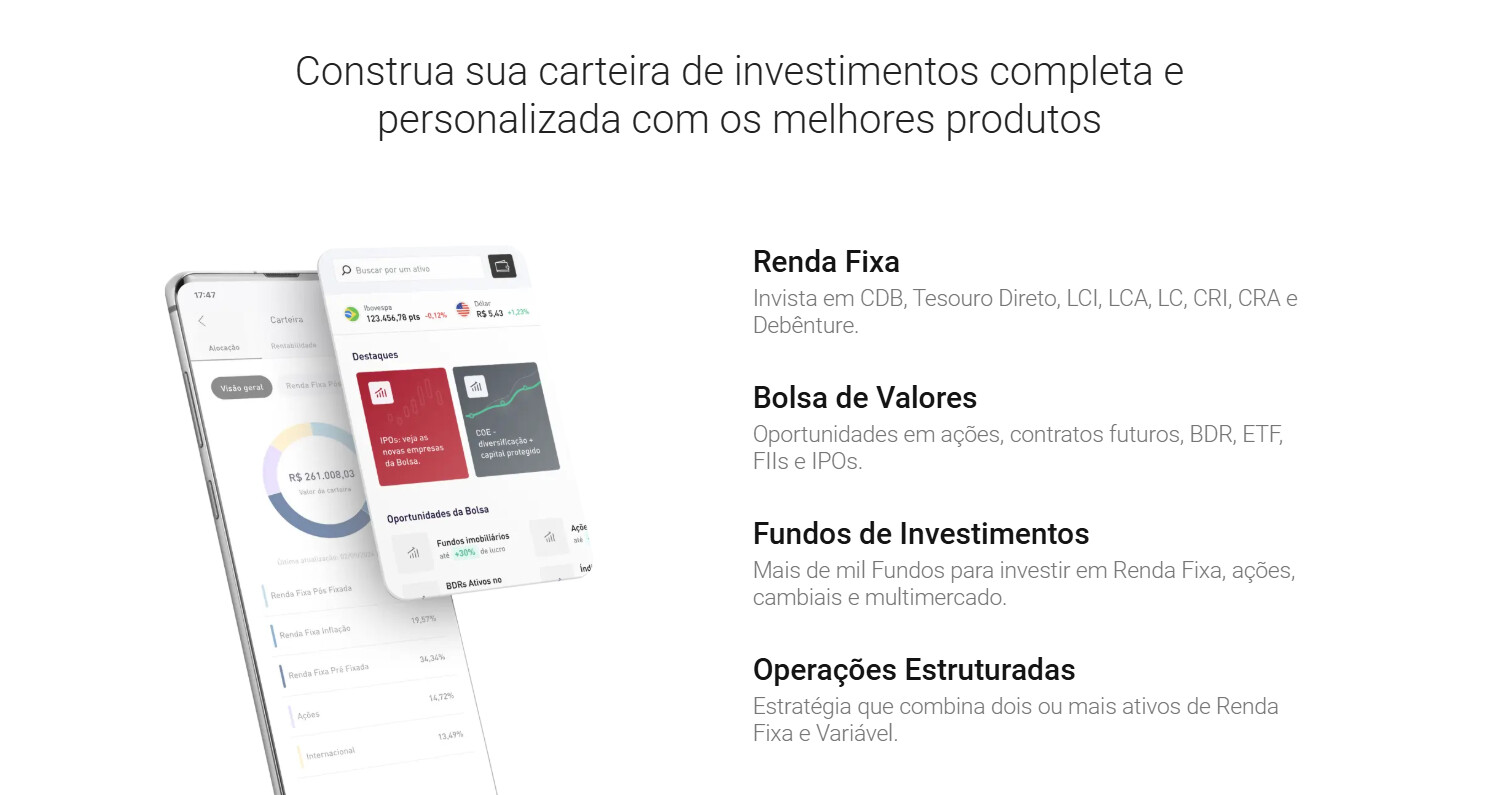 - Quer uma conta digital e cartão de crédito, além da corretora.