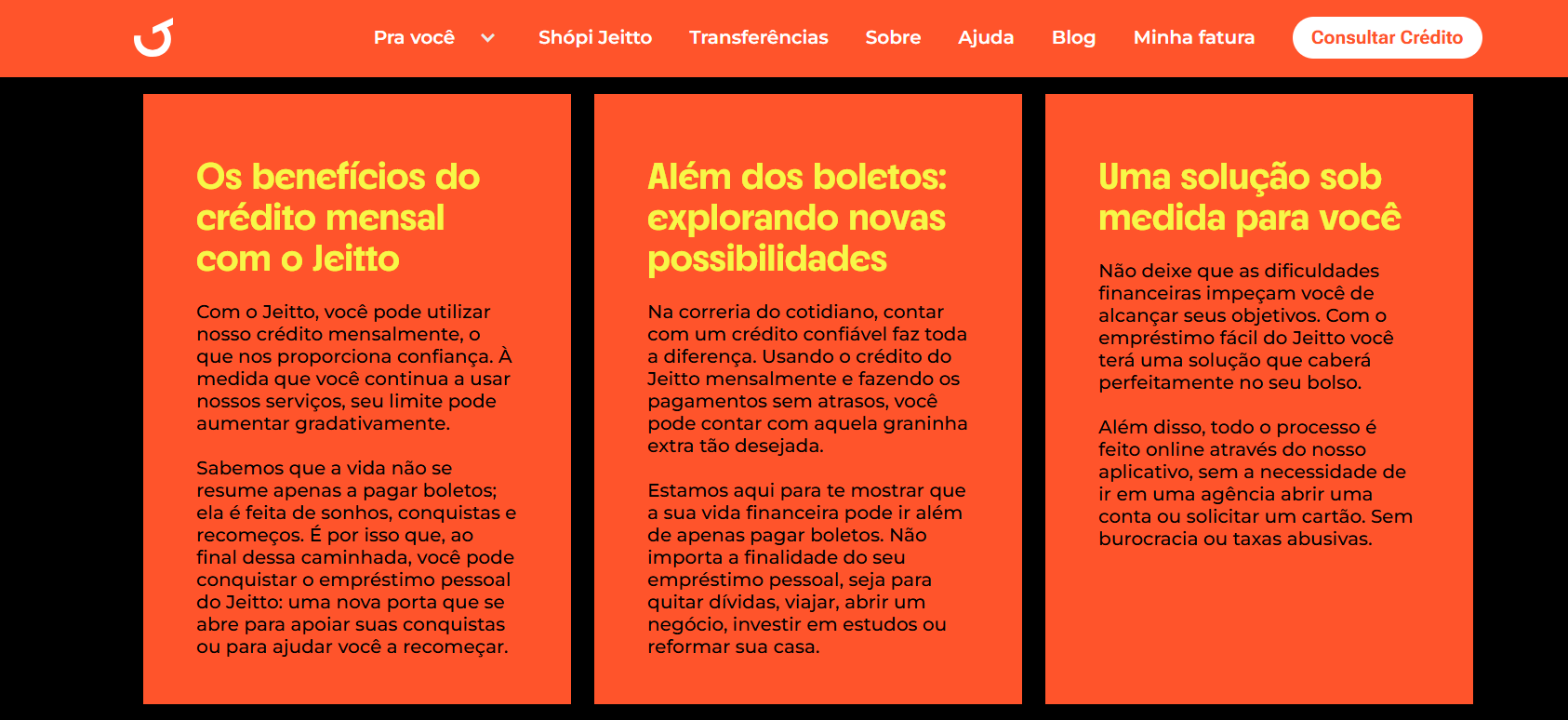 O Jeitto analisa o seu comportamento financeiro dentro da plataforma e, com o tempo, pode liberar ofertas ainda maiores incluindo opções de empréstimo pessoal Jeitto, pensadas especialmente para você.
