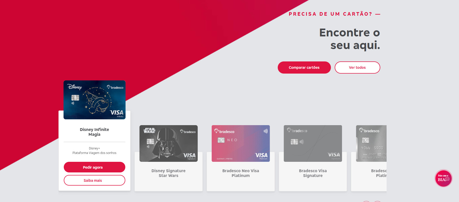 O limite inicial pode variar conforme o produto. Cartões como o Bradesco Neo ou o Bradesco Like Visa têm limites mais acessíveis pra quem tá começando, enquanto os premium, como o Elo Nanquim, exigem renda mínima alta e costumam começar a partir de R$ 10 mil.