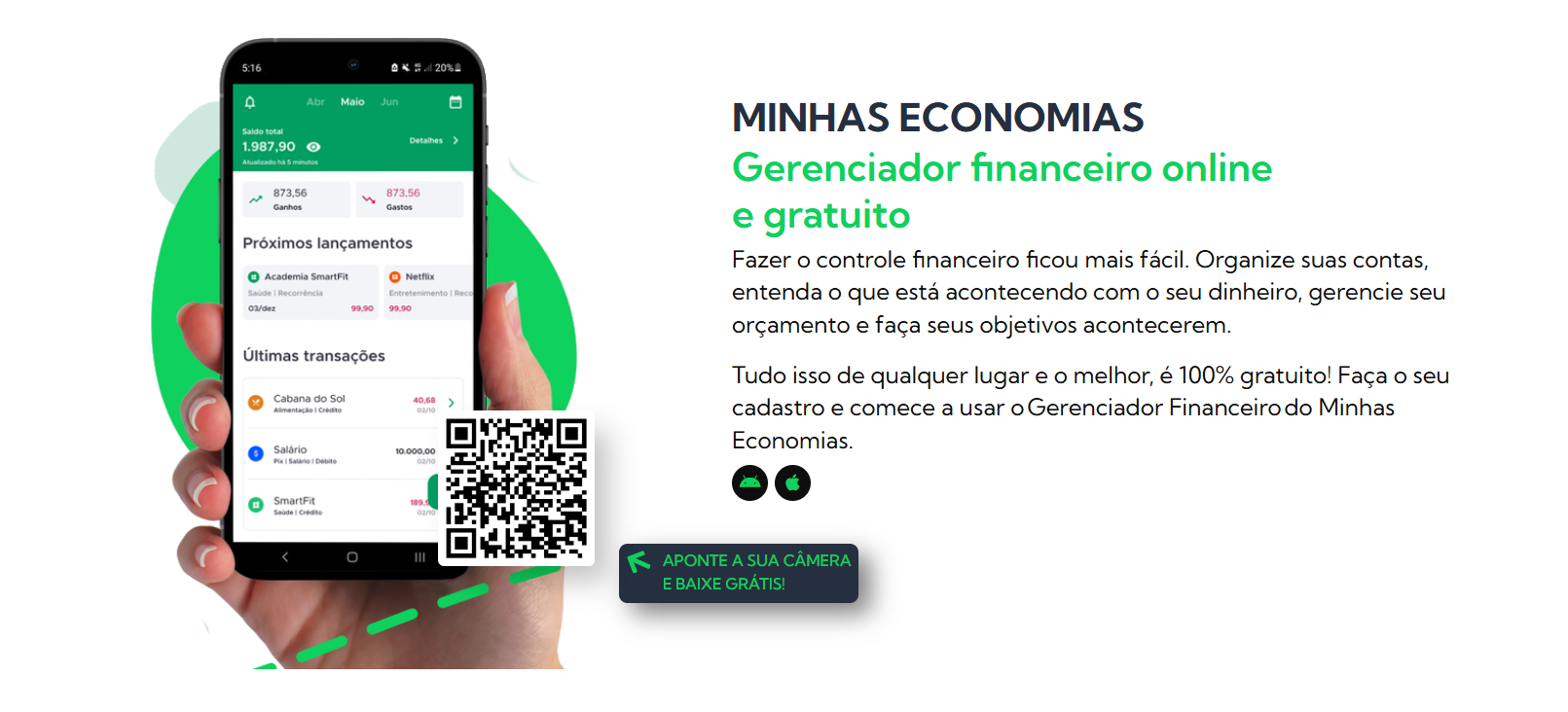 Sou fã do Minhas Economias, é gratuito, tem tudo o que preciso e ainda me ajuda a planejar o futuro.