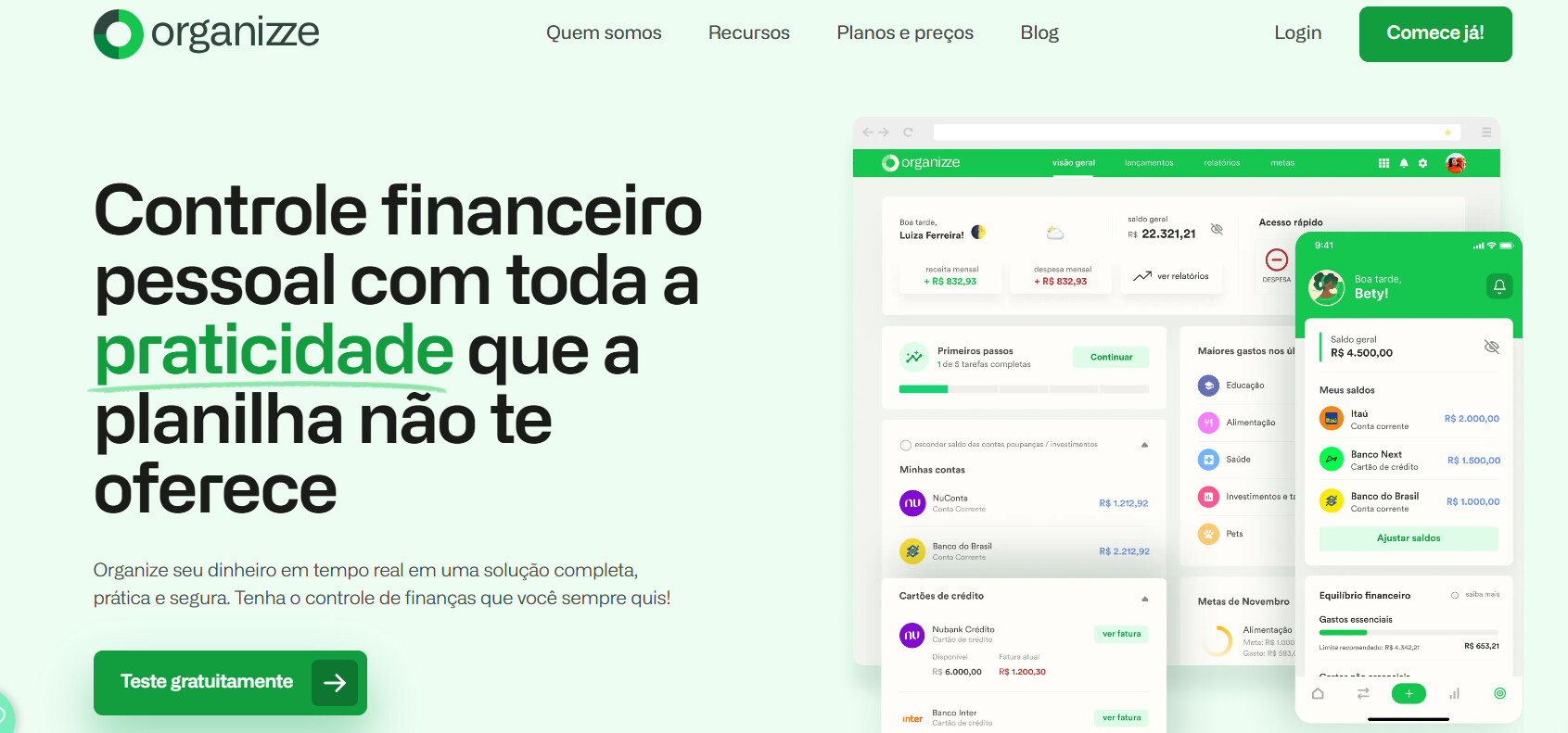 Se você prefere algo mais simples e direto, o Organizze também é uma ótima opção, com interface limpa, uso offline e painel personalizável.