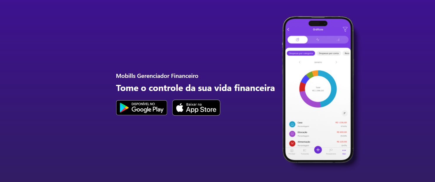 Para quem busca um app de controle financeiro familiar, minha recomendação é começar pelo Mobills, ele é um dos mais completos do mercado, com controle de despesas por categoria, definição de metas, gráficos detalhados, acompanhamento de investimentos e integração com múltiplas contas bancárias.