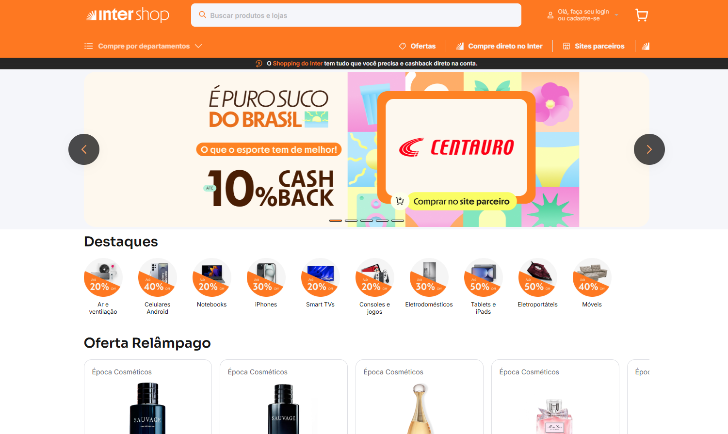 Tenho usado o Inter Shop, do Banco Inter, e gosto bastante porque o cashback já cai direto na conta.