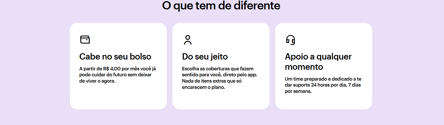 Oferece um seguro prático e moderno, com planos a partir de R$ 12,00 mensais. Suas coberturas incluem morte, assistência funeral familiar (até R$ 5 mil) e auxílio na divisão de bens.