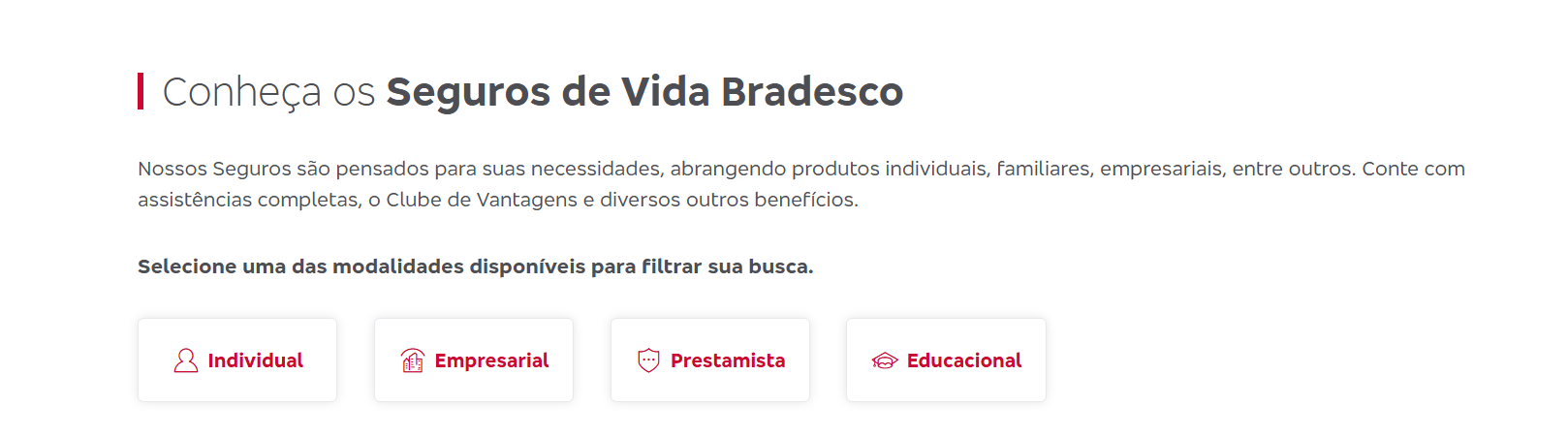 O Bradesco se destaca por oferecer uma ampla faixa etária de contratação (16 a 80 anos) e coberturas completas, como morte, invalidez, doenças graves, assistência funeral e até auxílio-desemprego.