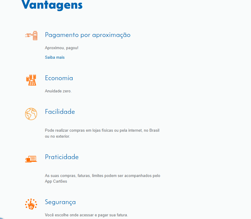 Ele é um cartão básico, sem custos de anuidade, e pode ser emitido nas bandeiras Elo ou Visa .