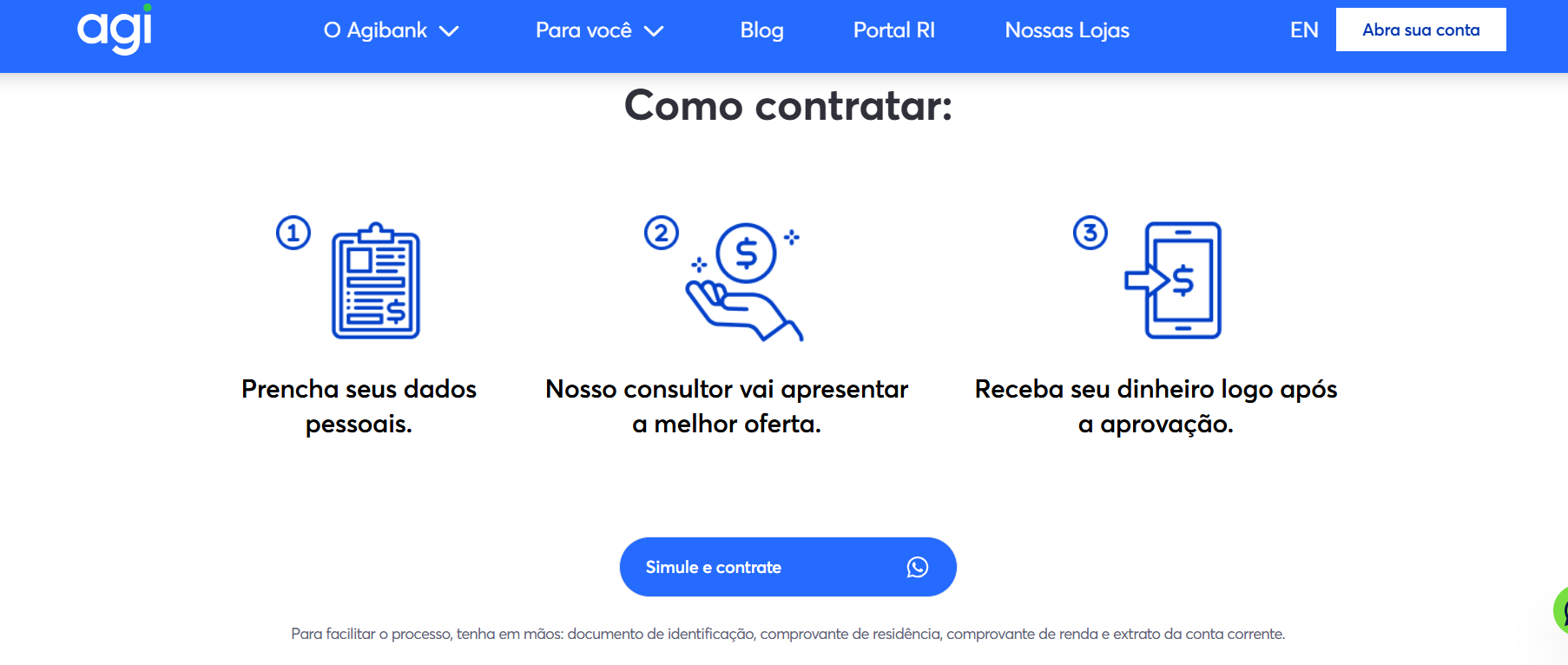 O empréstimo para negativado Agibank pode ser solicitado de forma 100% online, sem burocracia, e com a vantagem do crédito via Pix após aprovação. É uma alternativa interessante especialmente para aposentados, pensionistas do INSS e servidores públicos.