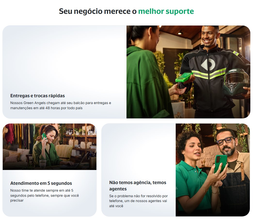 Já tive problema com a maquininha parar de funcionar e eles resolveram no mesmo dia, com troca inclusive. Outra coisa que gostei é que eles acompanham depois pra ver se deu tudo certo. Pra quem prioriza suporte, acho que vale muito a pena.