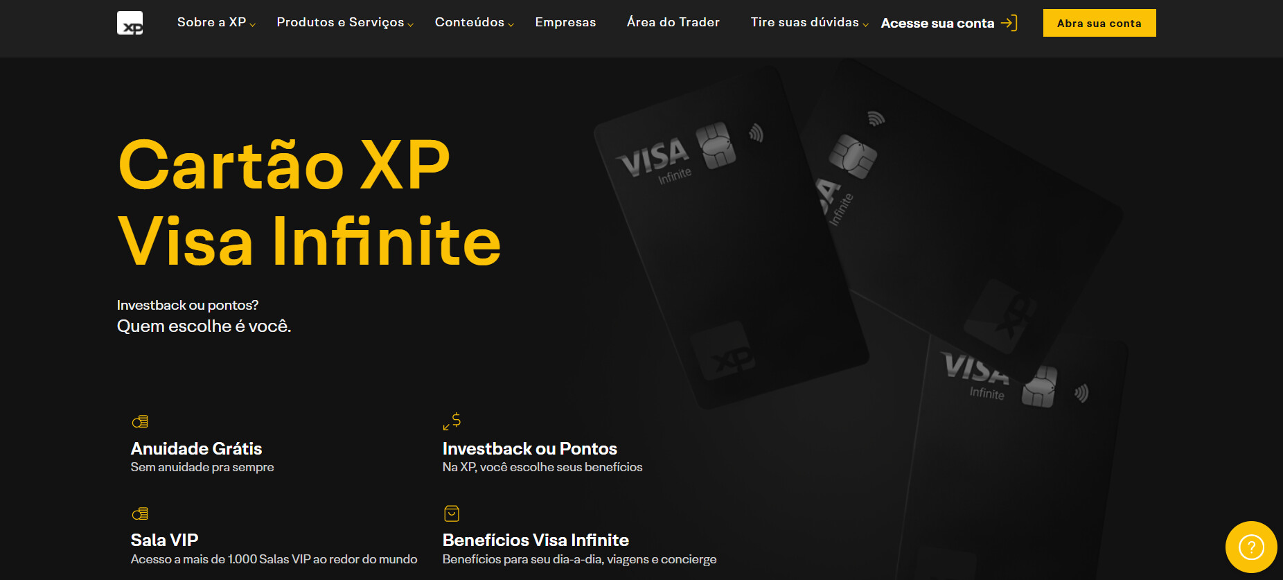 Para quem tem pelo menos R$ 5.000 em investimentos na XP, o XP Visa Infinite se torna uma opção bastante vantajosa, já que ele oferece anuidade grátis .