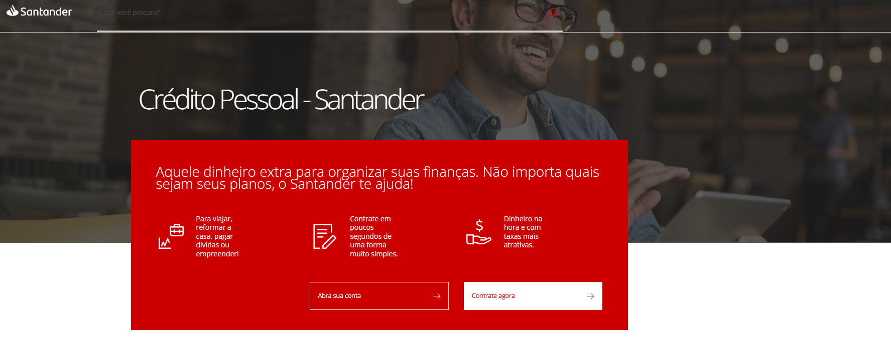 O mais fácil de aprovar que encontrei foi o do Santander. Já sou cliente, e o app me ofereceu o empréstimo pré-aprovado.