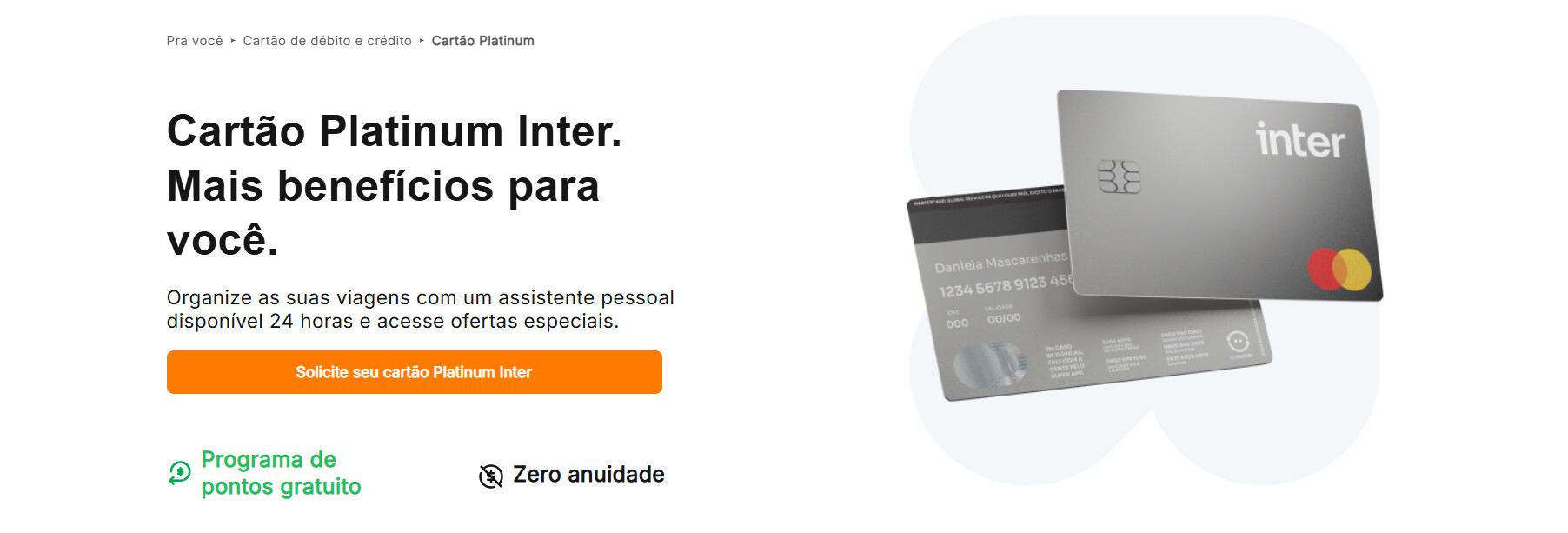 Além disso, o limite concedido pelo banco deve ser superior a R$ 5.000,00, considerando apenas a análise de crédito do Inter, sem incluir valores do CDB Mais Limite. O Cartão Platinum Inter é uma excelente opção para quem busca benefícios exclusivos sem anuidade.