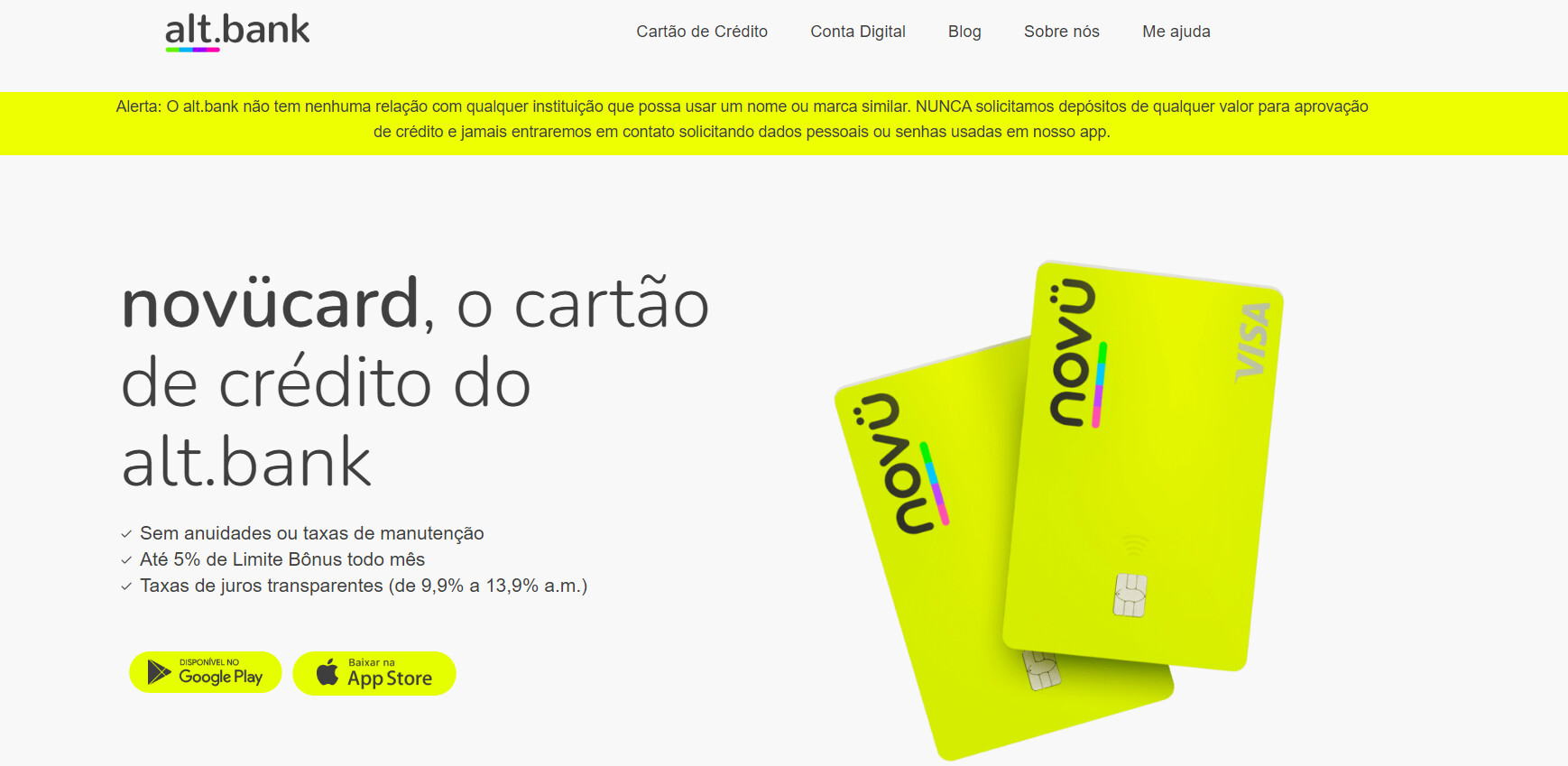 O Alt Bank Ă© uma opção que eu recomendaria se vocĂȘ busca simplicidade e economia. Ele nĂŁo tem anuidade, o que jĂĄ Ă© um grande alĂvio, e vem com a bandeira Visa, que Ă© amplamente aceita, tanto no Brasil quanto no exterior.
