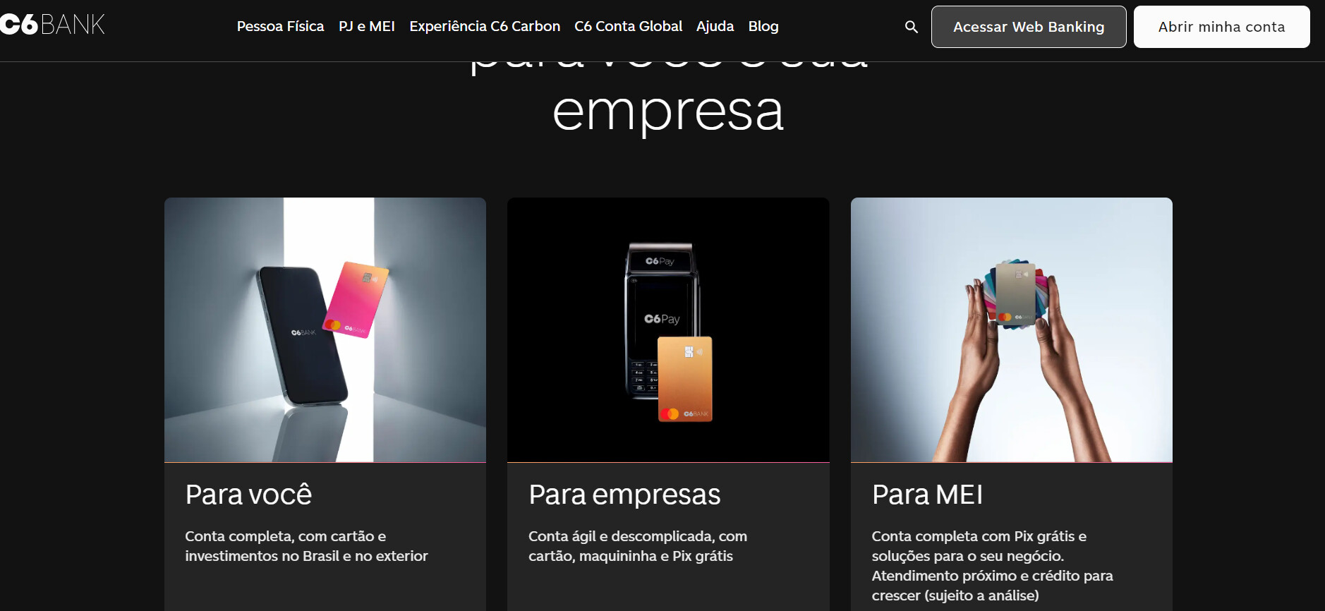 | Benefícios em Viagens | Sem taxa de saque internacional; C6 Tag gratuita para pedágios | Acesso a salas VIP, seguros para viagens, assistência em viagens internacionais |