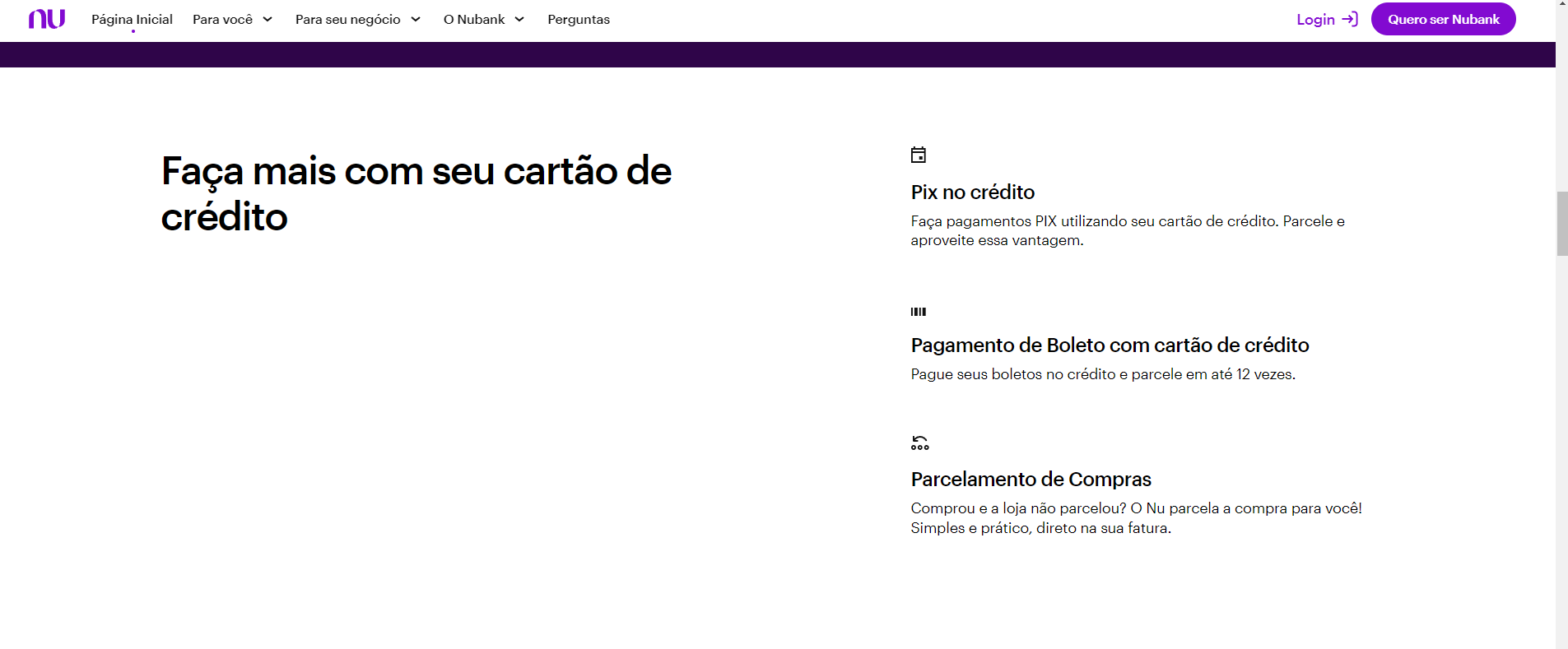 Mas o Nubank me conquistou pela praticidade. O app é super fácil de usar, e você controla tudo por lá, além de não ter anuidade.