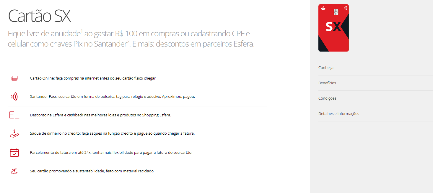 Pessoal o Santander SX oferece mais benefícios com um programa de pontos que pode ser interessante para quem viaja ou compra com frequência.