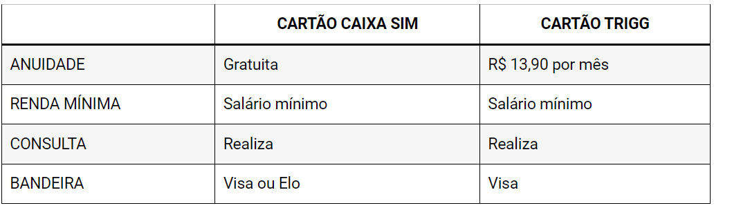 Olá! Estou procurando um cartão de crédito e estou em dúvida entre o Caixa Sim e o Trigg. Qual desses dois cartões vocês acham que é o melhor? Obrigado!
