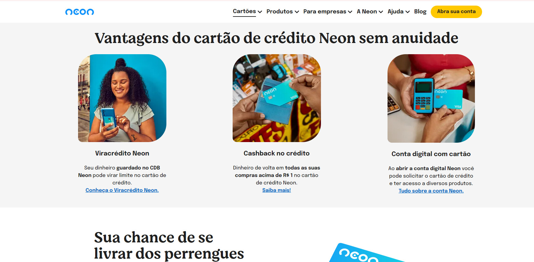 Por outro lado, o Neon é perfeito para quem busca simplicidade e um gerenciamento financeiro moderno, oferece uma experiência totalmente digital, com um aplicativo muito prático e o serviço de Limite Elástico, que pode ser muito útil se você precisar de um limite extra para uma compra específica.