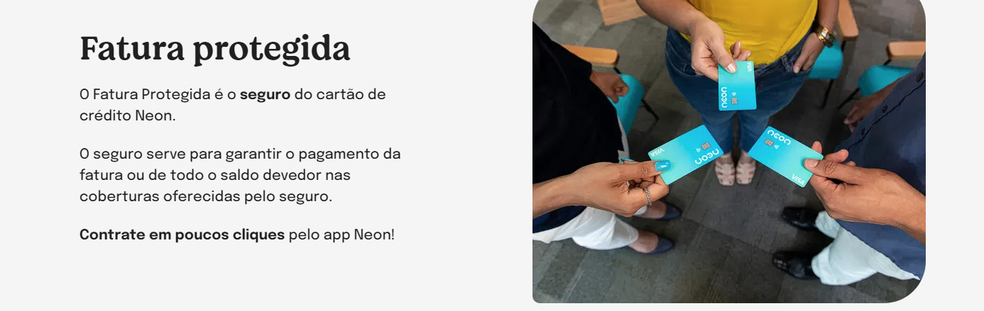 Para completar, o Neon oferece o serviço de Fatura Protegida, que funciona como um seguro para garantir o pagamento da sua fatura em situações imprevistas, como perda de renda. Isso traz uma camada extra de segurança, algo que é essencial em tempos de incerteza.