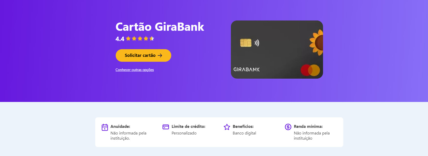 Se você quer um cartão mais voltado para economia no dia a dia (com cashback, transferências gratuitas e um app eficiente), eu diria que o cartão GiraBank é a melhor escolha.