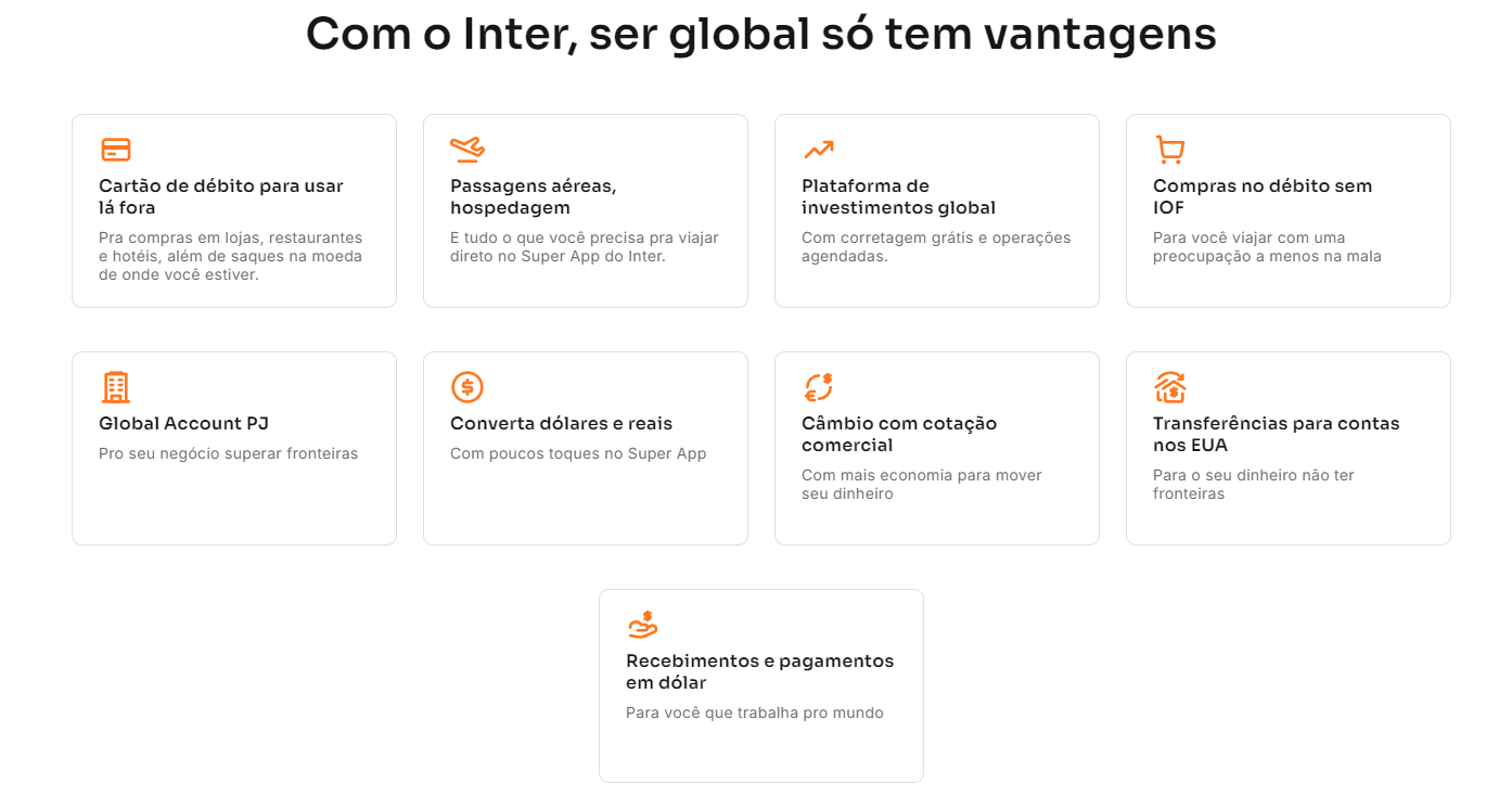 O cartão global do Banco Inter é uma excelente opção para quem busca facilidade e economia em transações internacionais, principalmente ao avaliar qual o melhor cartão internacional.