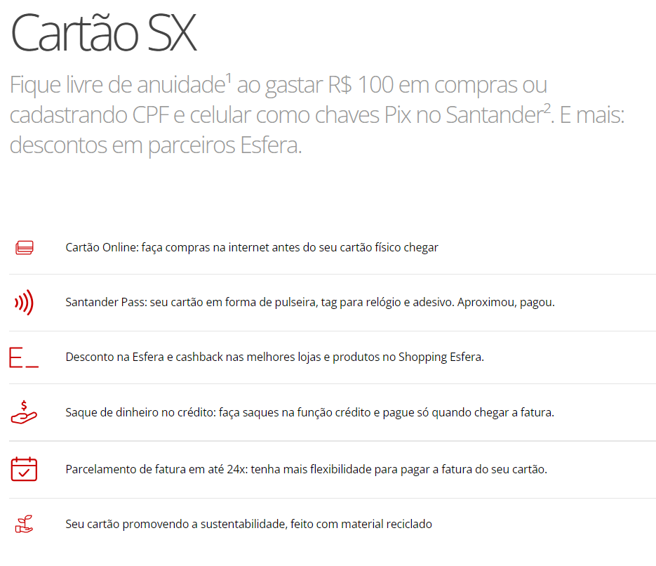 Eu recomendaria o cartĂŁo Santander SX