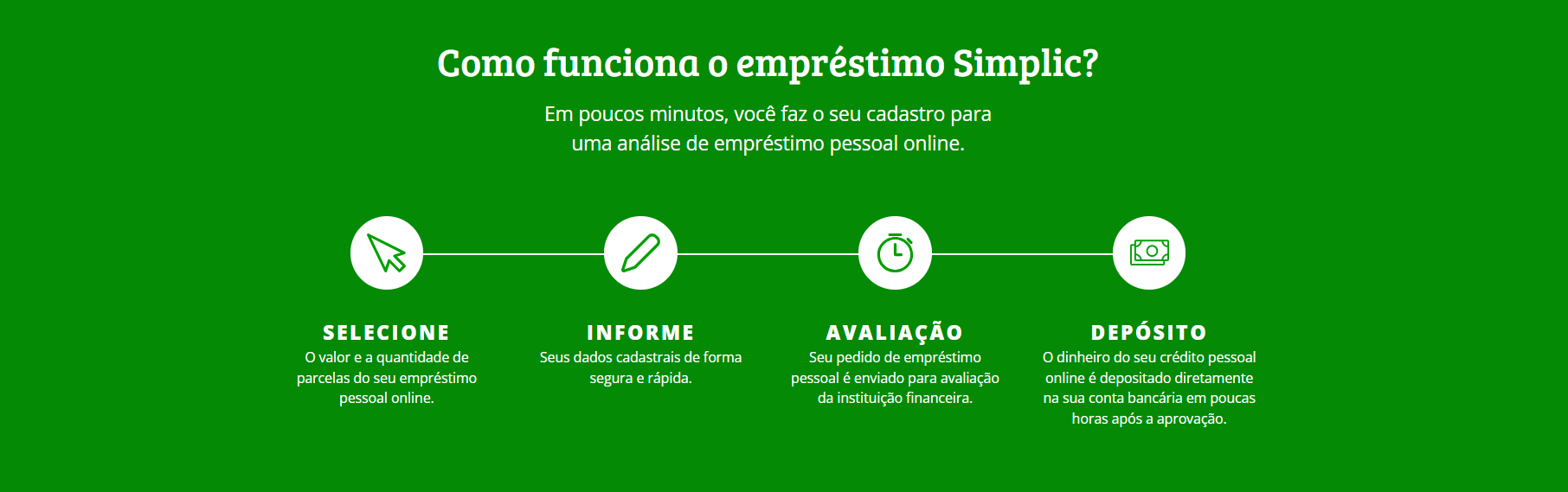 Eu solicitei meu empréstimo na Simplic e a aprovação foi super rápida, em menos de 10 minutos recebi uma resposta dizendo que meu pedido estava aprovado. Mas, como tinha algumas verificações adicionais, o processo demorou umas 2 horas a mais.