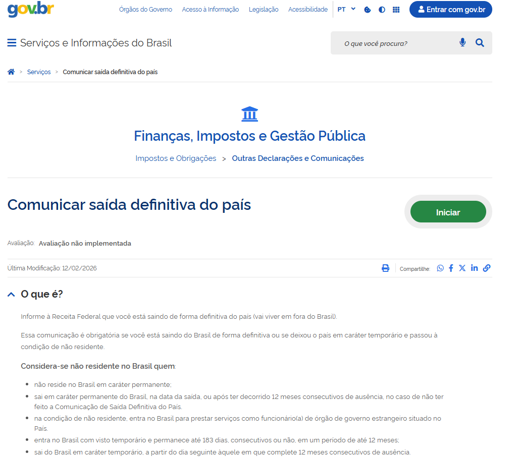 Esse processo basicamente informa oficialmente à Receita que você não mora mais no país e não será mais tratado como residente para fins tributários.