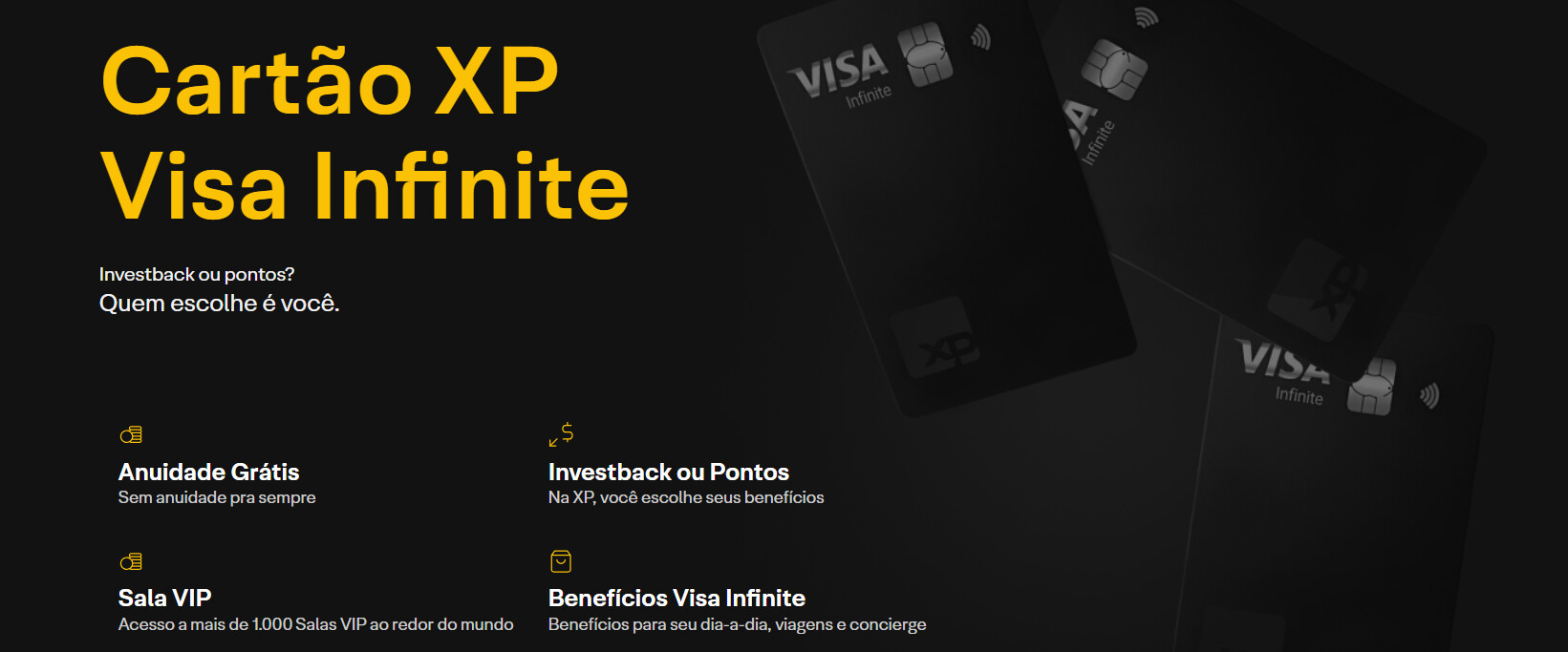 Já o cartão XP Visa Infinite também oferece o programa Investback, mas com vantagens adicionais, como acesso ao LoungeKey e ao Visa Airport Companion, dependendo do perfil do cliente.