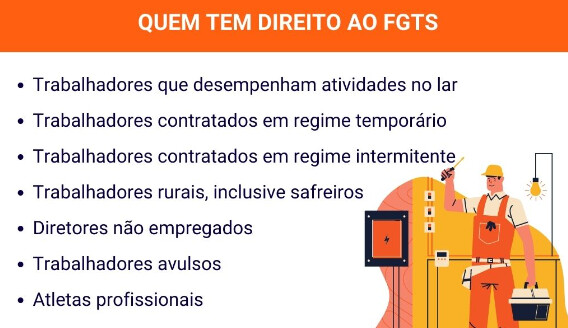 Além disso, trabalhadores temporários, intermitentes e avulsos também podem ter direito ao FGTS, desde que estejam com contrato de trabalho formalizado.