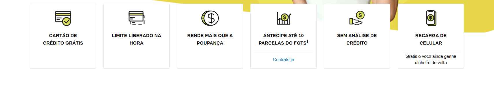 A abertura da conta digital é fácil, feita de forma online e sem necessidade de análise de crédito.