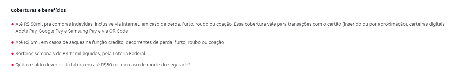 Essas funcionalidades adicionais podem ajudar a prevenir o uso indevido do cartão em caso de perda ou roubo.
