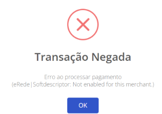 | Transação cancelada sem explicação | Instabilidade no sistema do emissor | Esperar alguns minutos e tentar de novo |